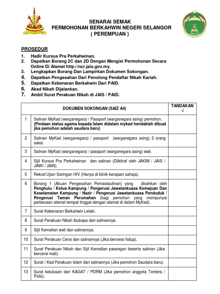 Senarai Semak Permohonan Nikah Perempuan Pdf