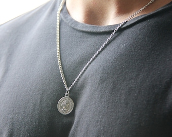 Check out the necklace lengths charts below. 50-55 cm 20-22 Falls at the collarbone and is the most common size for mens necklaces. Mens Necklace Style 3 Religious Emblems.